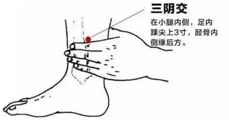 定位:在小腿內(nèi)側(cè),當(dāng)足內(nèi)踝尖上3寸,脛骨內(nèi)側(cè)緣后方。